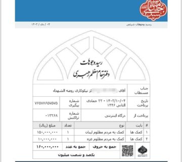 سری سوم کمک به جبهه مقاومتAdminzدی 28, 1403گزارش انجام کار در سری سوم کمک به جبهه مقاومت، به همت و همدلی شما حامیان جبهه مقاومت، مقدار ١٣٣.٨٣٠ گرم طلا ... ادامه مطلب